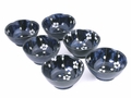 Beautifully glazed in dark blue, this Japanese appetizer plate set is embossed with white cherry blossoms on black alloy branches.