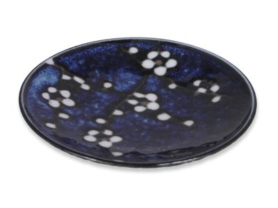 Though this little Japanese sauce dish is incredibly light in your hands, you’ll be surprised by its variety of uses! Made from quality ceramic in Japan, this circular dish features a design of white cherry blossom flowers growing on dark brown branches. Set against a dark navy blue background, this design evokes the image of a cherry-blossom viewing at midnight. In Japanese culture, cherry blossoms are thought to symbolize many positive qualities such as love, joy, bravery, wisdom, innocence, hope, and humility.