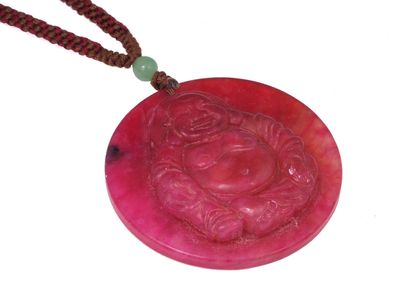 Crimson Lucky Laughing Buddha Jade Pendant